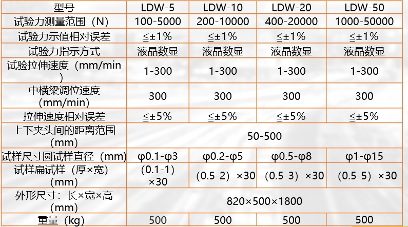 LDS-5/10/20/50微機控制拉力試驗機主機為雙立柱落地式結(jié)構(gòu),無須在地基上鉆打絲杠用孔,安裝方便。該機加載部分采用先進的交流伺服電機和全數(shù)字交流伺服驅(qū)動器,試驗速度(無極)可調(diào),數(shù)字顯示。