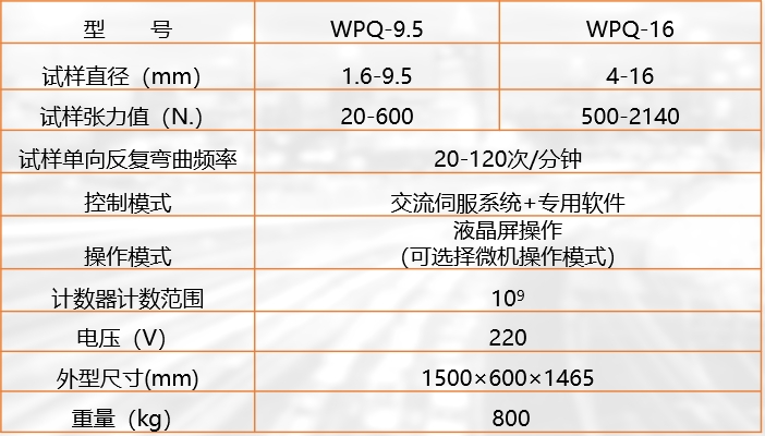 WPQ-9.5/16鋼絲繩疲勞試驗(yàn)機(jī)用來(lái)做直徑在1.6-9.5mm/4-16mm范圍內(nèi)的鋼絲繩的彎曲疲勞性能試驗(yàn)??梢詼y(cè)定鋼絲繩第一根、一股或全部斷裂時(shí)彎曲疲勞次數(shù),也可測(cè)定一捻距內(nèi)斷絲根數(shù)達(dá)到規(guī)定值時(shí)彎曲疲勞次數(shù)。本機(jī)采用專用軟件、液晶屏顯示(可選擇微機(jī)控制)具有試驗(yàn)數(shù)據(jù)可靠,讀數(shù)直觀、準(zhǔn)確等特點(diǎn),該試驗(yàn)機(jī)可同時(shí)對(duì)兩根鋼絲繩在不同潤(rùn)滑狀態(tài)下對(duì)比試驗(yàn)。鋼絲繩彎曲疲勞試驗(yàn)機(jī)是生產(chǎn)企業(yè)和科研部門(mén)必選檢測(cè)裝備。